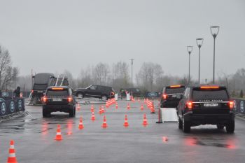 Один недостаток Рейндж Ровера 2012 мне все-таки обнаружить удалось. Камеру заднего вида, расположенную под задним спойлером, в дождь постоянно заливает грязной водой, отчего качество изображения падает. Жаль, что британцы не хотят использовать германский опыт Volkswagen и прикрывать «глаз» если не эмблемой, то какой-нибудь крышечкой с электроприводом. Гордость им, что ли, не позволяет? После динамичного вояжа по мокрой трассе была полоса искусственных препятствий. Ее проходить на Range Rover откровенно скучно. Знай себе потихоньку дави на газ и… всё. А, нет, забыл… Иногда надо еще давить на тормоз. Все остальное делает за водителя автоматика: система Terrain Response второго поколения самостоятельно может определить вид покрытия под колесами (асфальт, трава, грязь, песок или камни) и управлять трансмиссией и подвеской исходя из обстановки.
