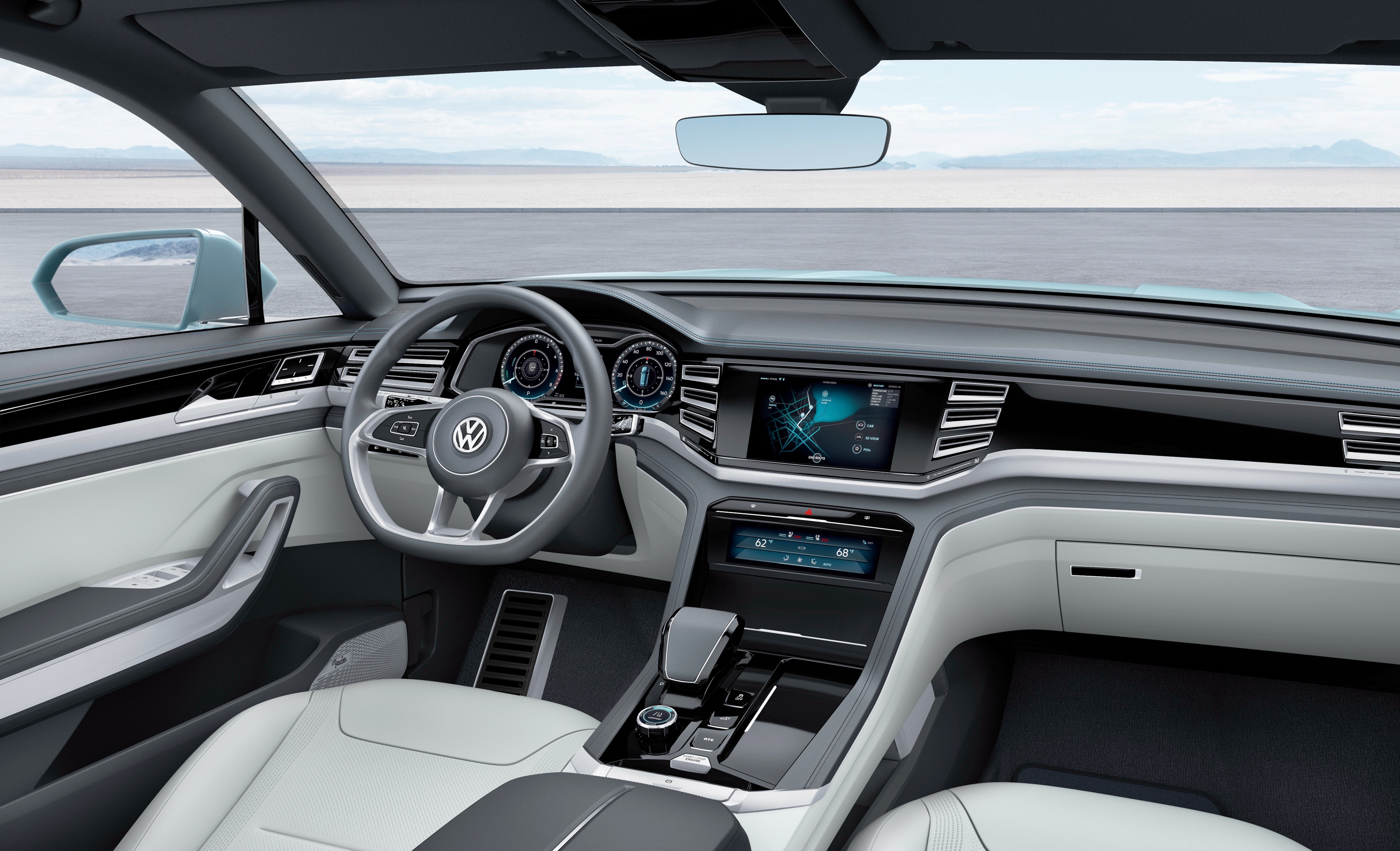 В базовой комплектации Volkswagen Cross Coupe GTE имеется цифровая приборная панель Active Info Display с цветным 12,3-дюймовым экраном, информационно-развлекательная система с цветным сенсорным экраном диагональю в 10,1 и климат-контроль.