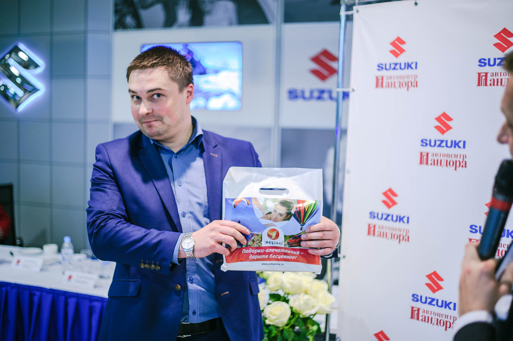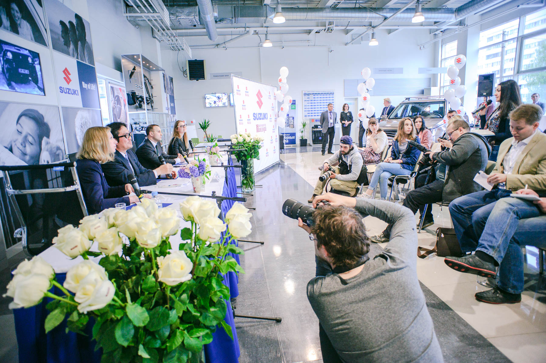 Перед торжественной частью состоялась пресс-конференция для представителей СМИ. В числе спикеров был новый генеральный директор «Сузуки Мотор Рус» Кеичи Сумида и директор по продажам автоцентра «Пандора» Олег Шеховцов.