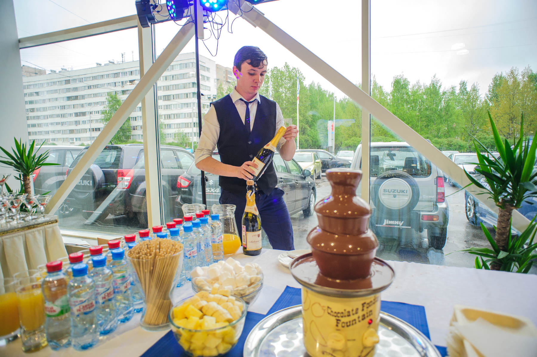 Далее гости мероприятия смогли отдохнуть и развлечься, для них была подготовлена интересная программа: фокусник-иллюзионист Андрей Позняков, участник шоу «Удиви меня» и Comedy Battle, показывал своё мастерство, саксофонист разбавлял атмосферу вечера приятной музыкой, в то время как гостей ждал весенний фуршет: легкие закуски и шоколадный фонтан с фруктами.