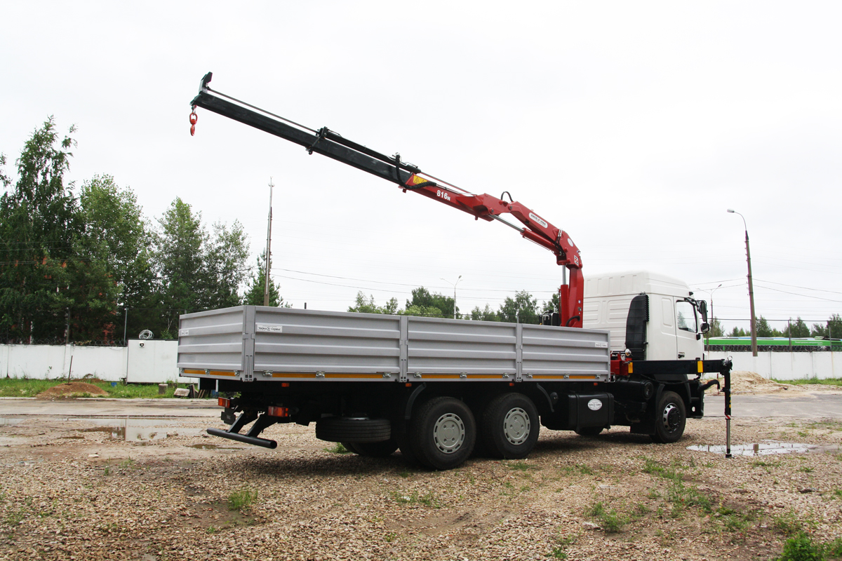 Благодаря своему вылету КМУ покрывает всю площадь бортовой платформы, что позволяет размещать груз самым удобным образом.