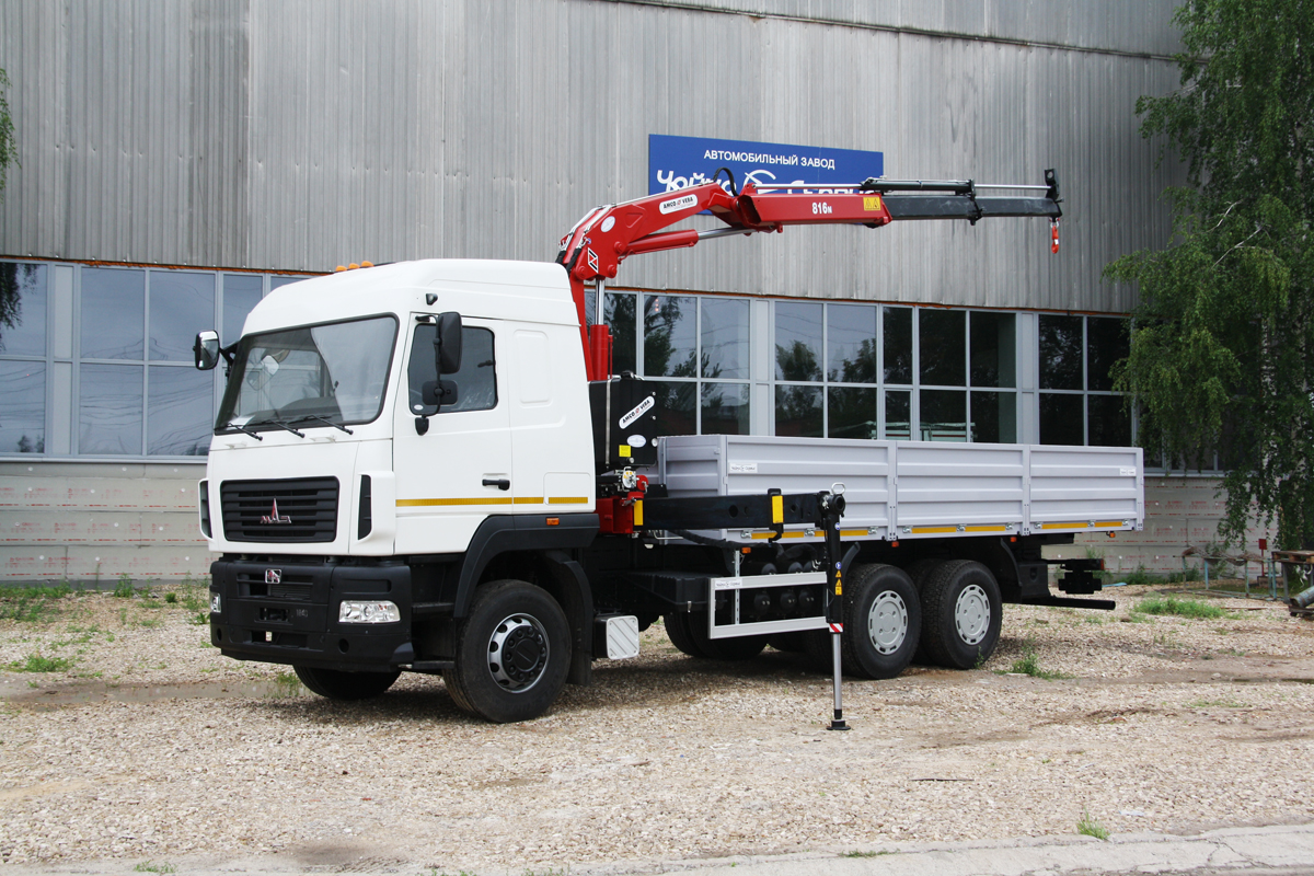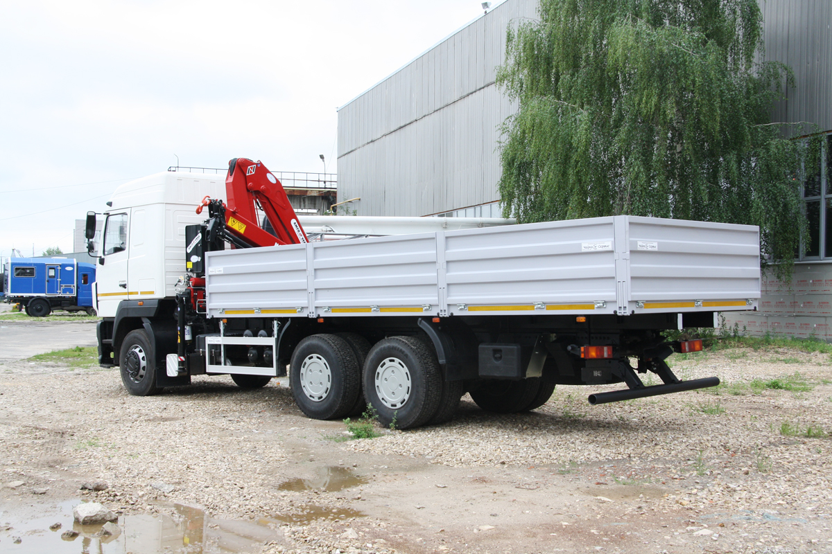 Автомобильный завод «Чайка-Сервис» устанавливает надстройки не только на малогабаритное и среднетоннажное шасси, но и на крупнотоннажные грузовые автомобили. Прямой тому пример недавно выпущенная техника – МАЗ-6312 с бортовой платформой Fuhrmann и КМУ Чайка-Amco Veba 816N 2s.