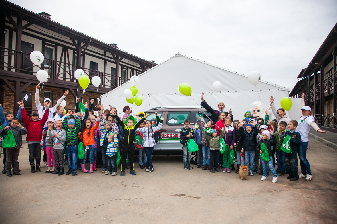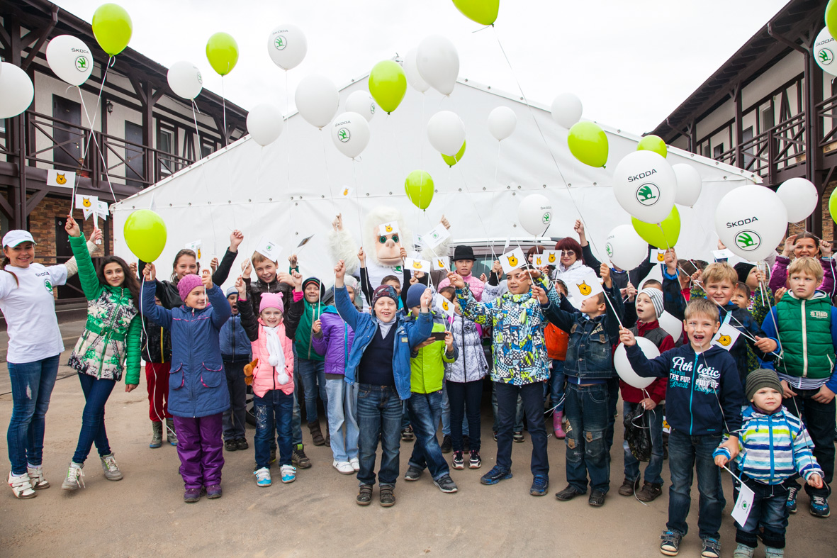 Завершился праздник групповой фотографией рядом с автомобилем SKODA Yeti в фирменной оклейке проекта «SKODA Кроха».