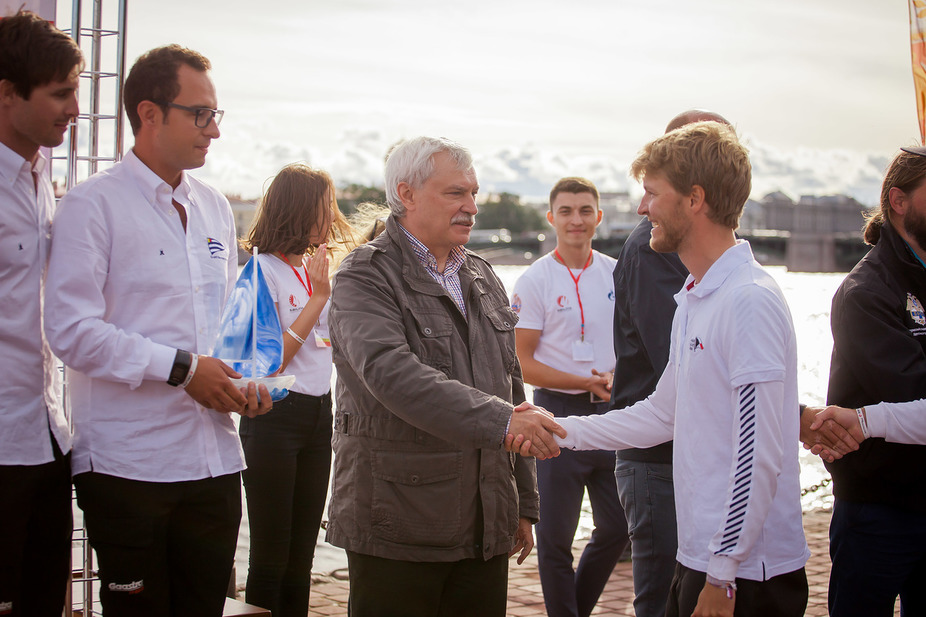 Заслуженные трофеи соревнований победители и призеры этапа Парусной Лиги чемпионов Европы получили из рук губернатора Санкт-Петербурга Георгия Полтавченко, который прибыл в гоночную деревню яхт-клуба Санкт-Петербурга поприветствовать международный флот, представлвший 12 стран.