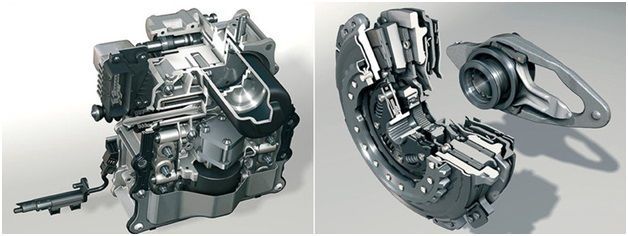 Блок «мехатроники» – слева и двойное сцепление – справа, доставившие владельцам «сухих» семиступенчатых DSG наибольшие хлопоты