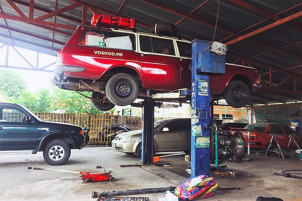 Практически все текущие поломки мы исправляли прямо в дороге или по ночам после перегонов. В Челябинске нам очень помогли местные ребята с ремонтом моторчика дворников, в Бишкеке советский кулибин помог с ревизией машин перед перевалами, В Лаосе выточили порвавшийся демпфер рулевого вала, а на Пхукете вместе с чемпионом по ралли Гошей меняли коробку передач”.