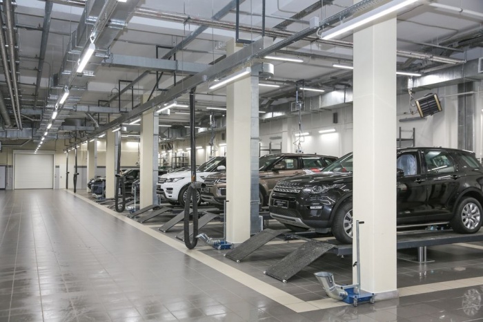 К шоу-руму на 1-м этаже примыкает сервисный центр, который занимает 2 тыс. кв.м. Здесь размещены 16 постов слесарного участка (включая 3 места для мойки машин) и 18 постов малярно-кузовного цеха (в том числе, 1 пост для мойки, что является инновационным решением для МКЦ). Сервисный центр оснащен самым передовым и уникальным оборудованием.