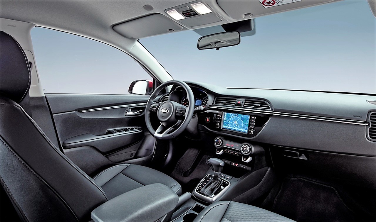 Разработчики оснастили седан подогревом всех сидений, навигационной системой, подсказывающей пробки, камерой заднего вида. Салон получил кожаную отделку. Новый Kia Rio автоматически откроет багажник, если водитель приблизится к нему с ключом.
