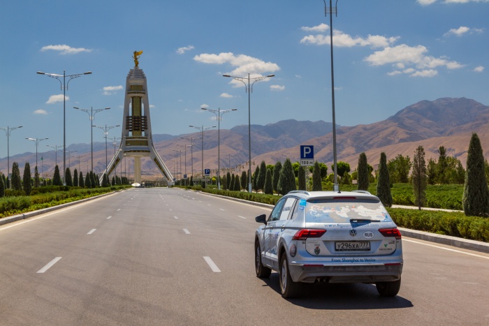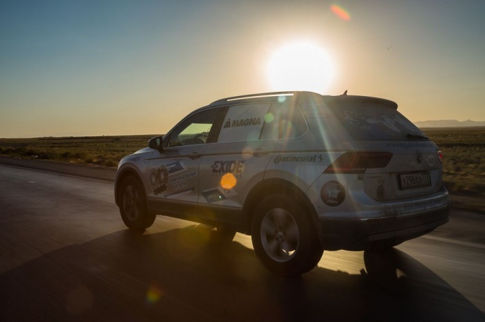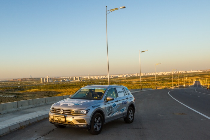 Для маршрута Шанхай – Венеция был выбран серийный бензиновый Volkswagen Tiguan калужской сборки мощностью 150 л.с. Этот двигатель обеспечивает отличную тягу и высокую экономичность: расход в загородном цикле составляет всего 5.6 л на 100 км. Специально для автопробега Tiguan был оборудован дополнительными фарами, усиленными пружинами задней оси и 150-литровым бензобаком.