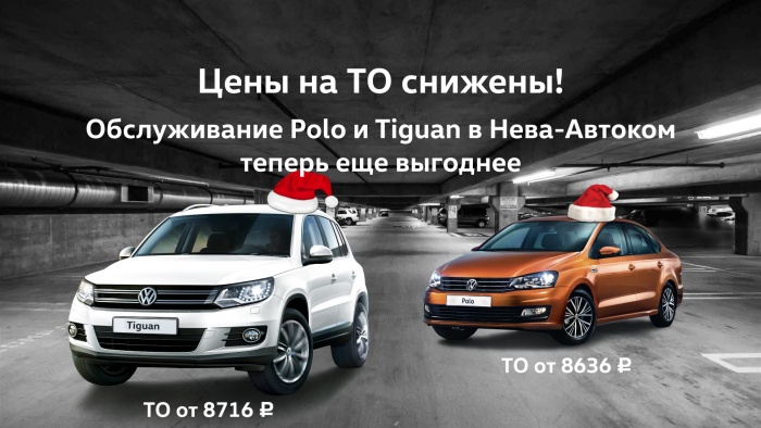 Сервисный центр «Нева-Автоком» объявляет новогодние специальные цены на регламентное ТО для популярных моделей Volkswagen!