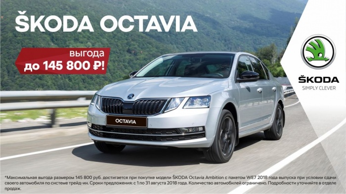 В течение всего августа клиенты дилера могут воспользоваться выгодными предложениям на приобретение автомобилей OCTAVIA, RAPID, SUPERB и сэкономить до 225 000 рублей.