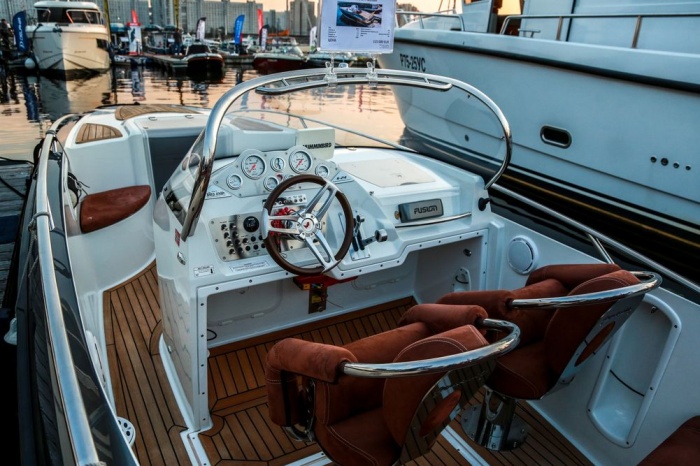 На воде гостям были доступны для осмотра более 60 яхт и катеров разных размеров, на любой вкус и кошелек. Это были как брокеражные модели, так и суда, на строительство или поставку которых можно было оставить заказ. Заинтересованные клиенты имели возможность выйти на понравившейся лодке в акваторию Финского залива, чтобы под руководством опытного шкипера опробовать ее в деле. Самый представительный флот получился у компании Nord Star Yachting, которая привезла 6 различных по длине яхт именитого британского бренда Princess, всю модельную линейку финских катеров ХО и другие лодки разных производителей.