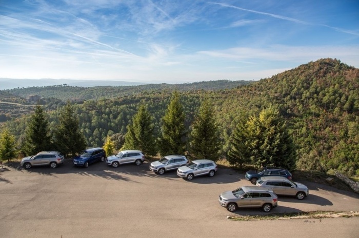 Десять автомобилей Skoda Kodiaq ожидают участников и готовы их довезти по горным дорогам Каталонии в предгорья Пиренеев