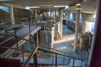 Винодельня расположилась внутри горного массива. Хозяин вырубил большое пространство в горе и построил там гравитационную винодельню. При производстве не используются насосы, все процессы происходят самотеком.