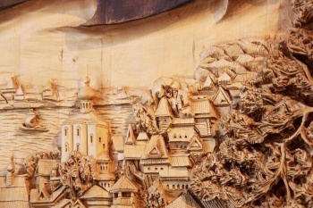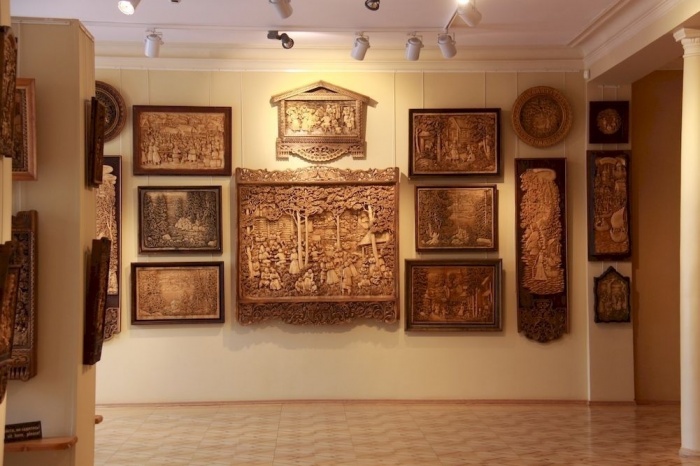 Работы Гоголева тёплые, мягкие, наполненные светлой энергией добра и любви. Хочется разглядывать их долго, находя в большом по объёму панно множество маленьких тщательно проработанных деталей. Это очень красиво и невероятно уютно. Уходить не хотелось.