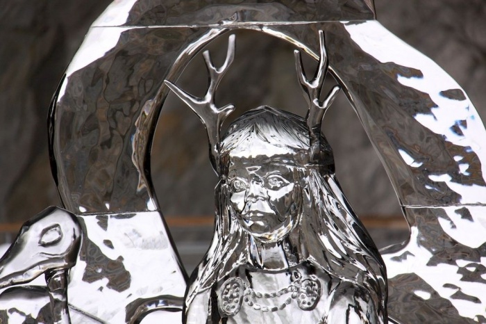 В этом году по это фестиваль по мотивам карельского эпоса. Звучит музыка, разноцветная подсветка добавляет фигурам объёма и таинственности. Мы попали в ледяную сказку, где есть и Ильмаринен с мельницей Сампо, и Айно, и Лоухи, и, конечно, Вяйнямёйнен. Авторы работ приехали на фестиваль «Тайна Глубины» со всей России и из-за рубежа.