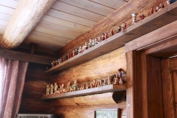 Заключительной встречей поездки было посещение Музея Мастера и дома на берегу Ладоги, где живут удивительные люди – Галина и Сергей Воловы. Всю жизнь Сергей работает с деревом – он и плотник, и берестянщик, и художник, и инженер. В начале 2000-х годов его бригада сработала улицу из деревянных домов в стиле викингов в парке английского городка Блэкпул , а в с 2003 по 2006 они строили по древним чертежам копию 25-главой Покровской церкви из села Анхимово. Сейчас это чудо деревянного зодчества можно увидеть в этнопарке Богословка.