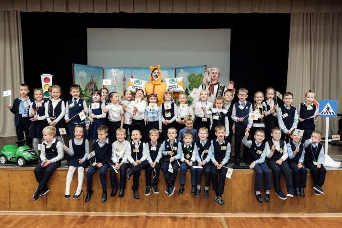 Вместе со сказочными персонажами дети научились ориентироваться по карте, выучили основные знаки и правила дорожного движения. Для школьников была организована площадка автошколы с мини-автомобилями ŠKODA, а в конце урока каждый ребенок получил в подарок красивый и полезный набор школьных принадлежностей.